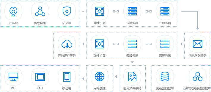电商云解决方案具备高弹性可扩展性、成本比传统IT架构节约70%以上、效率高、运维维护成本低等特点,帮助电商企业快速实现平台搭建、节约成本、应对高业务并发、强化安全防护能力等目标,助力电商用户快速实现互联网金融创新。